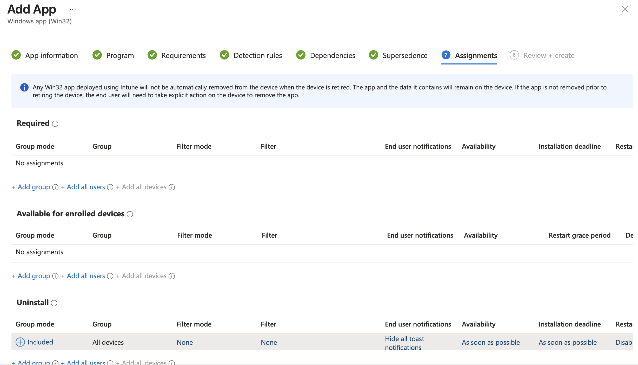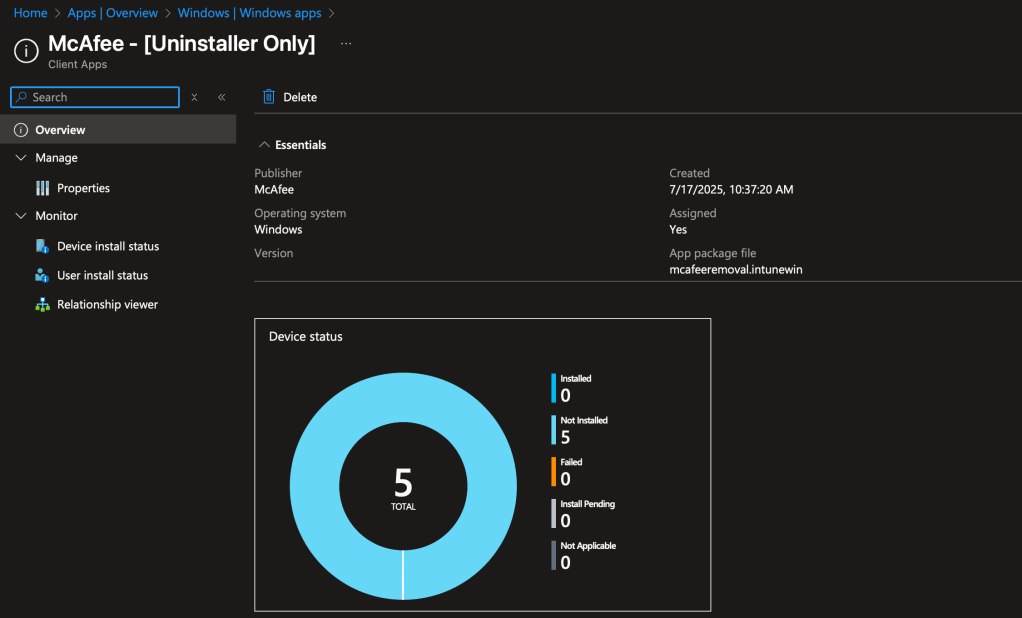 After uploading the application, monitor your devices through Intune as they check-in and receive the Win32 assignment for Uninstall.